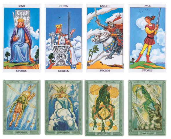 Мечи — Воздух, они воплощают интеллектуальную сторону. Это общение, передача информации, логика, мышление, обучение, планы, равно как конфликты.