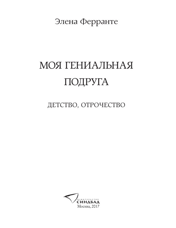 Моя гениальная подруга / Элена Ферранте ; [пер. с ит. О. Ткаченко]. — М.: Синдбад, 2017.