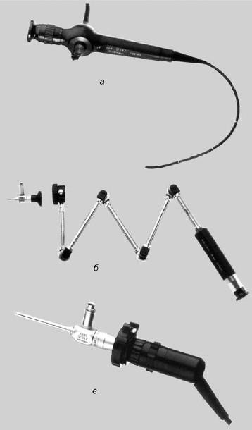 Ларингостробоскопическое исследование проводят с помощью специальных устройств, названных стробоскопами(от греч. strobos– кружение, беспорядочное движение и skopo– смотрю). Современные стробоскопические приборы подразделяются на механические или оптико-механические, электронные и осциллографические. В медицинской практике в последнее десятилетие XX в. широкое распространение получили видеостробоскопические установки с широкими многофункциональными возможностями (рис. 19.18).