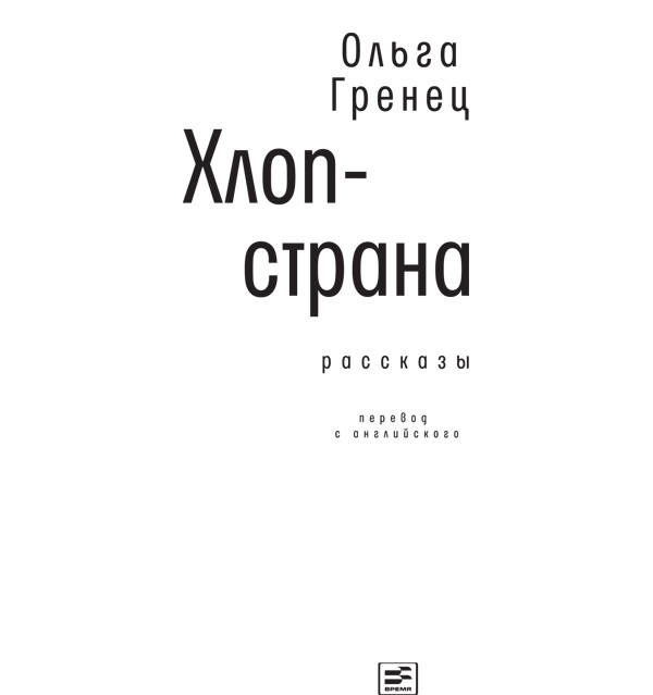 Хлоп-страна : рассказы (Пер. с англ.). / Ольга Гренец — М. : Время, 2017. — (Серия «Время читать»).