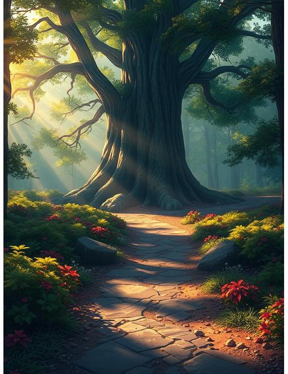 «Куда же теперь идти?» — прошептал Сэмми и обошёл дерево, глядя на дорожки. Лес выглядел загадочно и несколько мрачно.