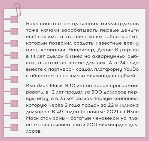 Если кто-то скажет, что в твоём возрасте ещё рано становиться предпринимателем, не верь. Есть множество примеров, когда дети создавали успешные бизнесы в 14, 12 или даже 9 лет.