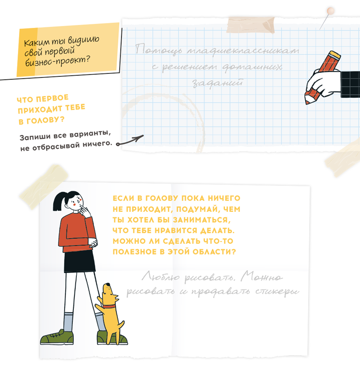 Если этого мало, загугли «лучшие идеи бизнеса школьников», «лучшие франшизы», «1000 идей бизнеса» или что-то в этом роде по-русски или по-английски. Мир предложит тебе тысячи идей. Они, конечно, все не твои, но ведь можно взять существующую идею и додумать её. Или просто посмотри на подборку, которую я для тебя сделал.