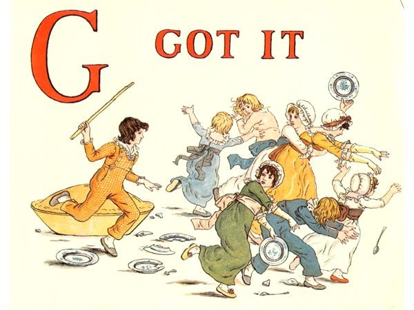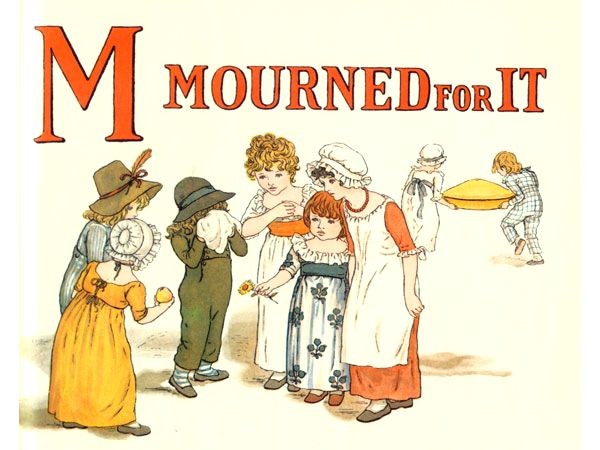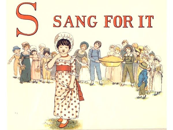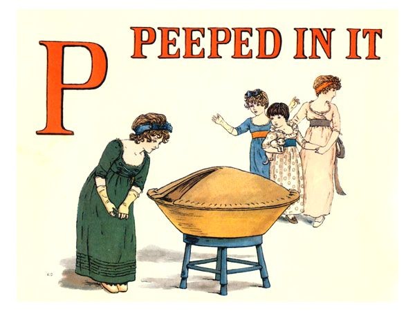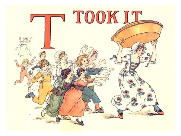 Kate Greenaway used an early version of the rhyme to illustrate A APPLE PIE which was first published in 1886 and it will be noticed that there is no rhyme for the letter I.