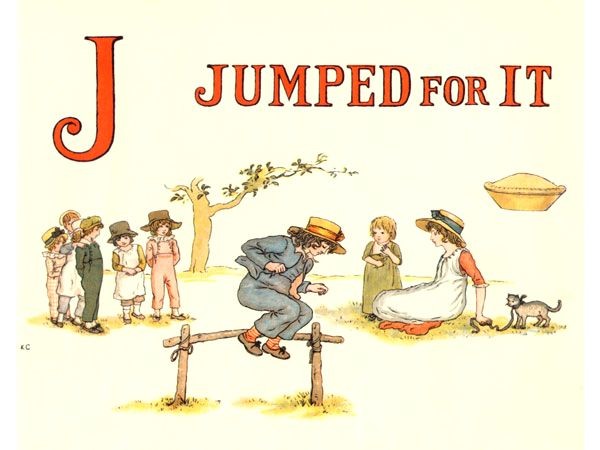 The rhyme of A APPLE PIE is very ancient and reference is made to it as early as 1671 in one of the writings of John Eachard. In these early versions the letters I and J were not differentiated. The letter J as we know it to-day was the curved initial form of the letter I and was always used before a vowel.