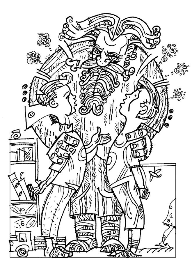 Он не договорил. Пламя несуществующего камина взметнулось до потолка… Кот вскочил и зашипел. Из огня, раздвигая руками языки пламени, грузно вылез незнакомый бородач в костюме и галстуке, крякнул и с утробным рыком бросился на кота. Животное заорало, прыгнуло в огонь и исчезло вместе с несуществующим камином.
