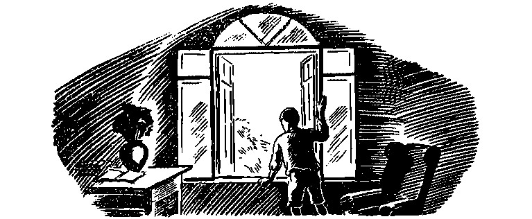Вася осторожно высунулся из окна и осмотрелся: кругом было тихо, нигде ни души. Тетушка наверно теперь тоже дремлет, сидя в кресле у себя в комнате. Вася вскочил на подоконник, а с него ловко соскочил на крышу террасы, приходившейся как раз под его комнатой. Легко и бесшумно добежав до края крыши, он ухватился за толстую ветвь липы, добрался по ней до ствола и спустился на землю. Сделав большой крюк, чтобы обогнуть окна тетушки, он добежал до черного крыльца, взбежал по ступенькам и вошел в большие светлые сени. У окна на стуле сидел старый лакей Петр. На носу у него были надеты очки в оловянной оправе, одной рукой он теребил свои седые баки, а в другой вытянутой руке держал какую-то исписанную карандашом бумажку. Все лицо его выражало сильное напряжение; при этом он шевелил губами, словно шептал.