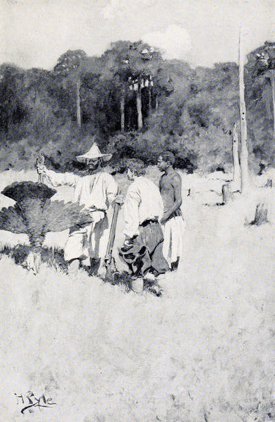 The yawl, a big, clumsy, broad-beamed, open boat, lay drawn up on the beach near to the landing. The mast, with the sails furled close and snug, the gaff, and the long oars lay along the thwarts. Jack helped Dred step the mast, and together they partly loosened the reef-points so that the sail hung limp and ready to be spread at a moment’s notice. There was a small barraca nearly half-full of water in the bow of the boat. Dred lifted it out, drew the plug, smelled briefly at the water, and then turned it out upon the sand. Then he sat down upon the rail for a talk, while the water glugged and gurgled out of the keg upon the beach. “D’ye see,” he began, “I look at this here affair this way. ’Tis not as though I was playing the captain false, d’ye see? for I was dead set against this here venture from the very first, and he went into it in spite of me. I didn’t want the girl fetched here, and I told him he would be getting hisself into bitter trouble if he did fetch her. Well, he would do it, and now ’tis just as I said. Now, d’ye see, ’tis either to take this young lady away, or else to sit by and see her die, as she’s bound to do if she lives here much longer; and ’tis as bad for the captain one way as ’tis another. If she dies on his hands he’ll be hung for sure, and if she gets away, the whole province of Virginny’ll be down here to roast him out; and either way ’tis as bad as can be, and nothing gained if she dies. Well, then, I don’t choose to sit by, and let her die, and no good come of it. My neck’s mightily precious to me, for ’tis all I’ve got; and if I can save it from being stretched by taking her back home again, why not do it—can ye tell me that?”