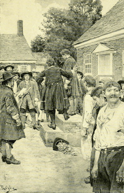 Jack stood silent in the presence of her sudden emotion, but still he did not know how to go away and leave her. “There, there, mistress!” he said, awkwardly, “don’t you take it so bitterly; it will all come right in the end, I know that, so don’t cry any more.” Then, feeling the barren inconsequence of his words, he continued, “Do you know what I was thinking as I rowed down from the town just now? I was thinking that I would try to help you to get away from here and back home again, so don’t cry any more.” Then he added, “If you’ll bid me, I’d take you away to-night—I would, and carry you back to Virginia again.”