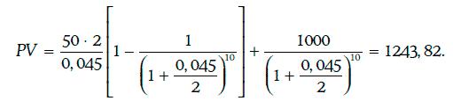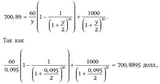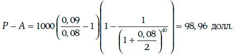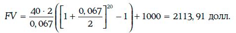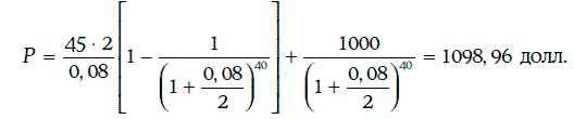 Пример 1.35. Дана 7%-ная облигация с полугодовыми купонами, когда до ее погашения остается 20 лет, а требуемая доходность — 10%.
