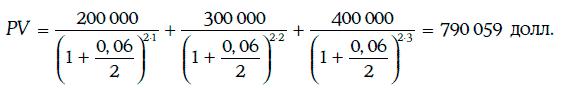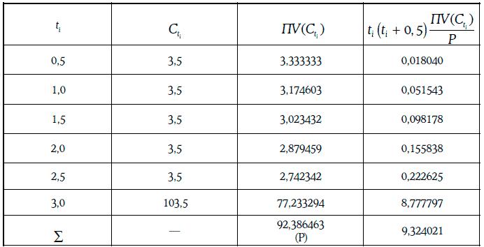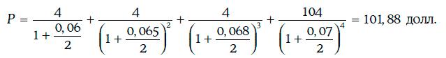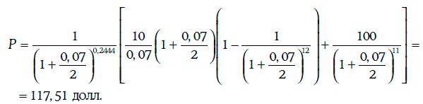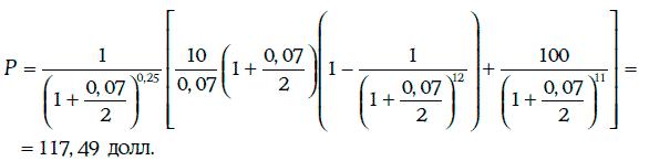 Пример 1.42. Рассмотрим 7%-ную облигацию с полугодовыми купонами, когда до ее погашения остается 3 года, а требуемая доходность равна 10%.
