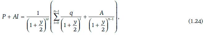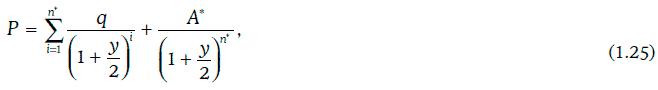 Дюрация Маколея облигации с полугодовыми купонами, когда до ее погашения остается в точности п полугодовых периодов, может быть найдена по формуле