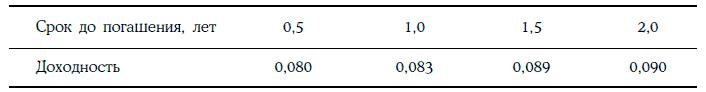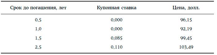 Пример 1.43 [5]. Даны три облигации с полугодовыми купонами, основные показатели которых приведены в таблице: