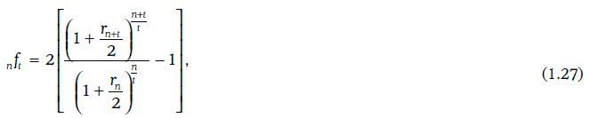 Однако если между данным моментом времени и первым процентным платежом рыночные доходности изменяются на одну и ту же величину Δr, а в дальнейшем уже меняться не будут, то будущая стоимость инвестиции Пф(Т) через Т лет удовлетворяет равенству