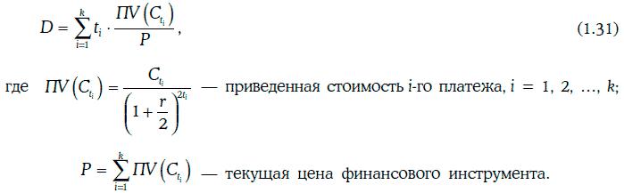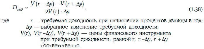 Для расчета модифицированной дюрации любого финансового инструмента с заданным потоком платежей можно использовать следующую приближенную формулу:
