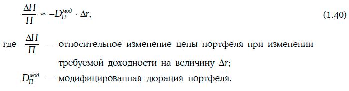 Основное свойство модифицированной дюрации портфеля облигаций: если требуемые доходности всех облигаций портфеля изменяются на одну и ту же достаточно малую величину, имеет место следующее приближенное равенство: