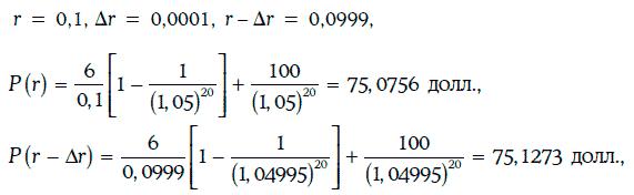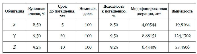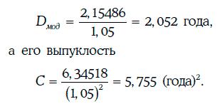 в то время как относительное изменение цены инструмента, найденное приближенно, без учета выпуклости, равно 0,04104, а точное значение этого изменения равно 0,04222.