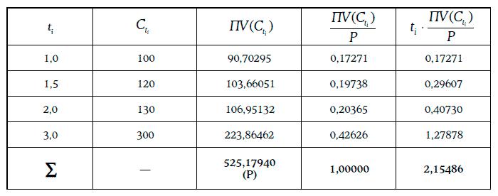 Дюрация Маколея данного портфеля облигаций находится следующим образом: