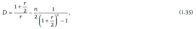 Дюрацию обыкновенной ренты с полугодовыми платежами можно найти по формуле: