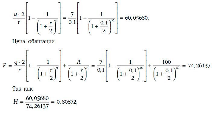 H — отношение приведенной стоимости ренты из купонных платежей к цене облигации.