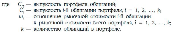 Выпуклостью портфеля облигаций называют взвешенную по стоимости сумму выпуклостей облигаций, из которых составлен этот портфель, т.е. по определению