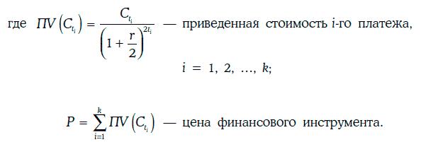 где r — требуемая доходность (при начислении процентов дважды в год);