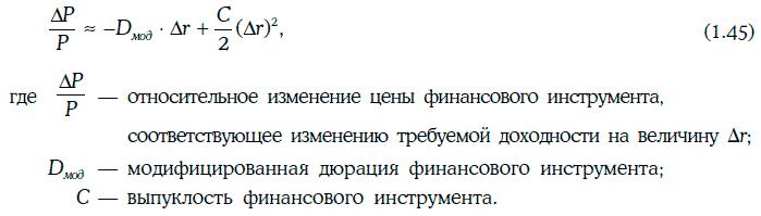 Если требуемая доходность облигации Х изменится на величину Δr, то соответствующее изменение стоимости этой облигации определяется равенством