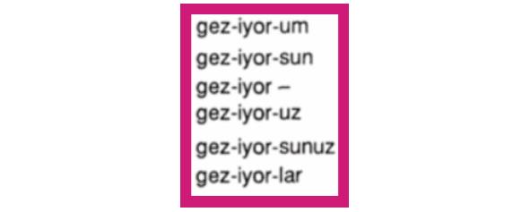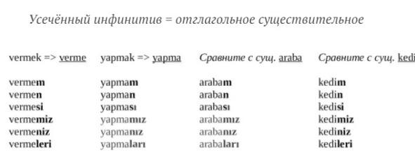 Sevgili dost.. (притяжательный афф.) (дорогой мой друг), şuan yaklaştık.. (смена согласной + родительный пад.) yargı.. (афф. мн. ч. + винительный пад.) anlamak.. (настоящее длительное вр.) (теперь я понимаю твои суждения).