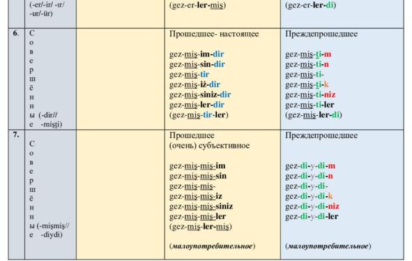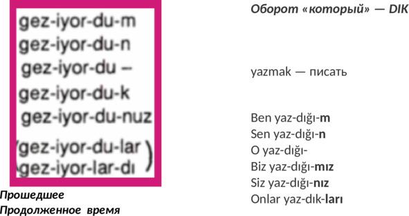 Прошедшее продолженное время (определённый имперфект -yordu) выражает действия несовершённого вида в прошлом.