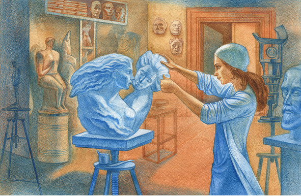 Сидя под палящим солнцем, мальчик наблюдал, как молодой человек сосредоточено откалывал куски от большой скальной глыбы.