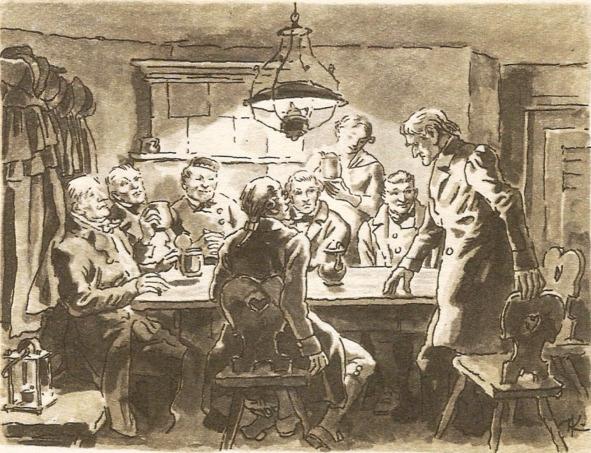 И «слепой молодец» с укором взглянул своим единственным глазом сначала на ратмана, потом на писаря и, пожелав всем доброй ночи, быстро вышел из трактира.