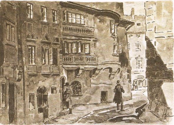Узкая Семинарская улица в Старом Месте ограничивалась в те времена тёмным трёхэтажным домом. Весьма старинным, внешне мрачным и безлюдным. В его подъезде и на узкой еле проходимой лестнице царил сумрак, постепенно рассеивающийся от пламени красного фонарика перед Распятием, висевшим в нише перед входом. В другой части было несколько небольших квартир. В одной из них в низенькой бедной комнатушке сидел Антонин Гласивец, молодой человек приятной наружности. Единственным богатством в этом жилище был шкаф полный книг, преимущественно французских, немецких и чешских.
