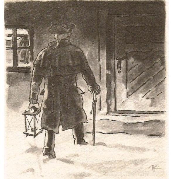 Снег всё шёл. Улицы освещали недавно вспыхнувшие фонари. Но резко каждый в своём направлении, ещё отзывались последние пожелания «доброй ночи» и при свете соседи скрывались по своим домам и углам.