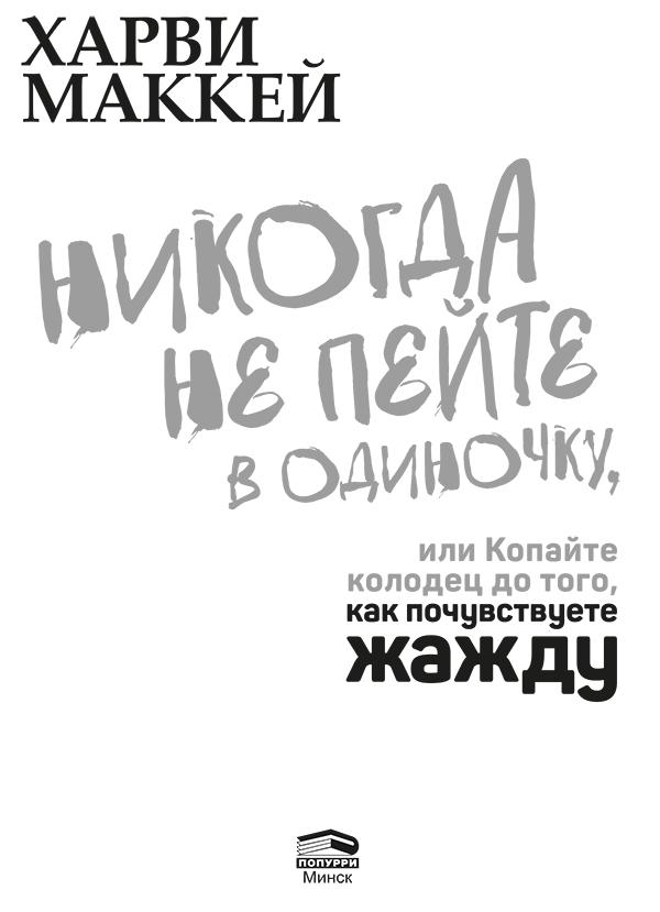 Перевод с английского выполнила П. А. Самсонов по изданию: DIG YOUR WELL BEFORE YOU’RE THIRSTY: The Only Networking Book You’ll Ever Need / Harvey Mackay. — New York: A Currency Book.