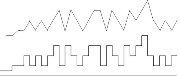 Они шли один над другим: гистограммы и угловатый. Группы, одинаковые или симметричные, были заметны сразу, даже без стоящих над ними цветных отметок.