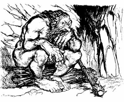 Thus, using her power, he bade the sorceress lead the way into the place of horror, and when she had entered, he raised the magic wand yet again, and smote the rock; and lo! it closed for ever, and the sorceress was left to bellow forth her lamentable complaints to senseless stones.