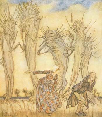 Then the white bird rattled the millstone about the eaves once more, and once again the stepmother said, "Hearken! How it thunders!"