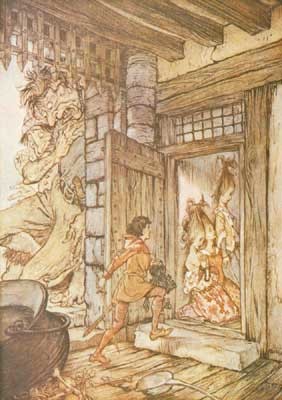 So the girl went and opened the door, and there was the frog from the Well of the World's End. And it hopped, and it hopped, and it jumped, till it reached the girl, and then it said: