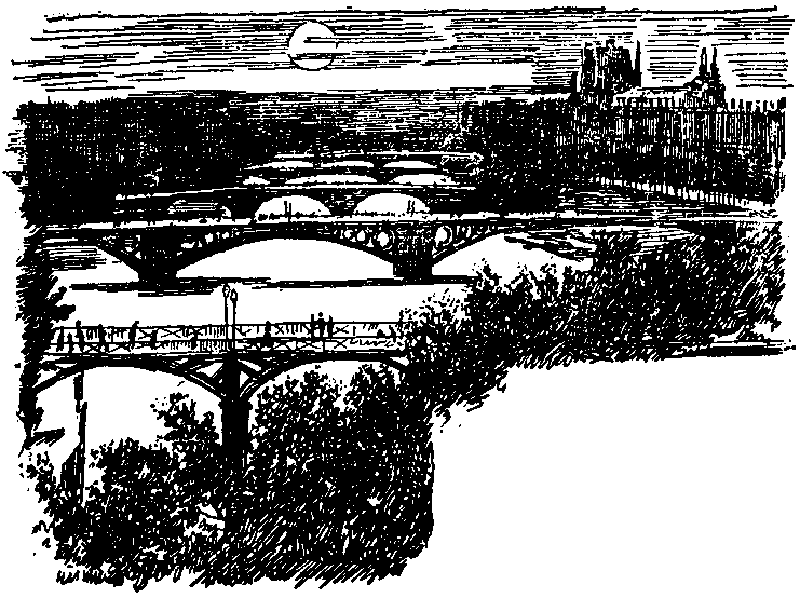 На середине моста Искусств они останавливались у перил, чтобы посмотреть на восток, в сторону древнего Ситэ и собора Парижской Богоматери, мечтая о том, чего не выразишь словами, и пытаясь всё же найти подходящие слова. Затем, обернувшись к западу, они глядели на пылающее небо и на расстилавшиеся перед ними Тюильри и Лувр, множество мостов, Палату депутатов, – а река в закатном золоте текла вдаль, то суживаясь, то расширяясь, вилась между Пасси и Гренель и текла всё дальше, к Сен-Клу, к Руану, к Гавру, может быть, до самой Англии, куда в данную минуту им вовсе не хотелось. И они пытались выразить словами, как необыкновенно хорошо жить на свете, когда живёшь в этом городе, и особенно сейчас, в этот самый день, год, столетие, именно на этом этапе их собственной смертной и преходящей жизни.
