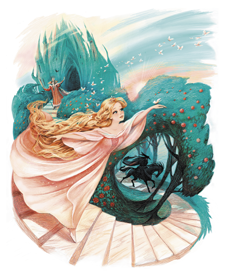 Широкая мраморная лестница полукругом спускалась в сад. Вскоре послышался стук лёгких каблучков, и по ступеням сбежала принцесса Мелисенда.