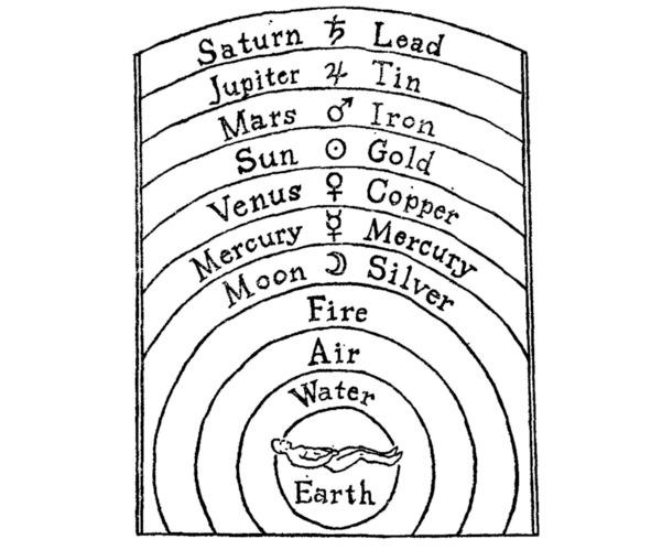 Около 335 г. до р.Х. греческий философ Аристотель из Стагиры дополнил систему четырех элементов Фалеса — своим пятым элементом — «квинт эссенцией» — эфиром, который пронизывает четыре других элемента. И в таком виде теория мироздания, понемногу модернизируясь, просуществовала достаточно долго — на рис.1 показана космология английского алхимика Роберта Фладда (1574—1637) — система химических элементов из 11 позиций, где вода (water) занимает второе место. При этом Фладд, не включил в свою систему «пятый элемент» Аристотеля — эфир.