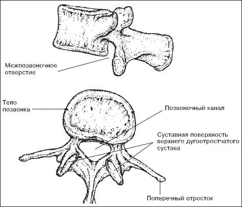 Позвоночник состоит из маленьких костей, которые называются позвонками (рис. 1.2). Их размер равномерно увеличивается в направлении от головы к крестцу. Располагаясь один над другим, позвонки образуют позвоночный столб. Между двумя соседними позвонками располагается межпозвонковый диск, представляющий собой круглую плоскую «прокладку» из соединительной ткани с очень сложным строением. Основной функцией дисков является амортизация статических и динамических нагрузок, которые неизбежно возникают во время физической активности. Кроме того, диски нужны для соединения тел позвонков друг с другом.