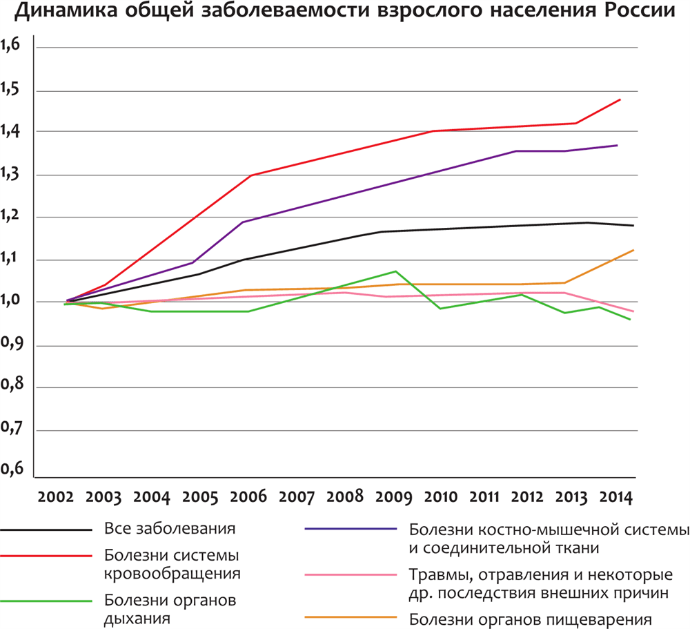 Динамика общей заболеваемости взрослого населения России