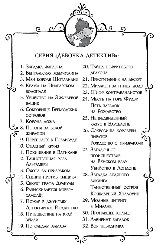 Наделённая потрясающим чутьём и феноменальной памятью, Агата Мистери мечтает стать писательницей. Но это в будущем, а пока она просто превосходная сыщица! Вместе со своим незадачливым братом Ларри, студентом детективной школы, она путешествует по миру, чтобы решать самые запутанные загадки. А помогают им преданный дворецкий, вредный сибирский кот и множество чудаковатых родственников.