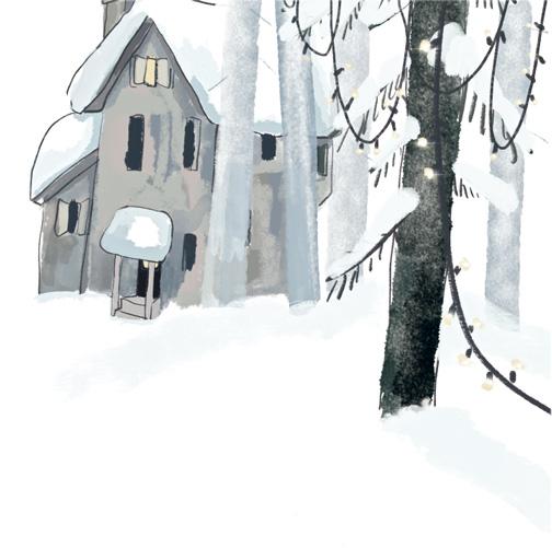 Да, мы живём в большом доме. И сразу за домом начинается лес. И в это время года на большой ели перед домом у нас всегда горят маленькие огоньки. А когда идёт снег, всё это действительно выглядит, ну да, как-то по-рождественски.
