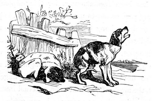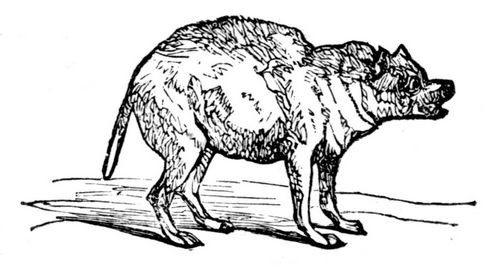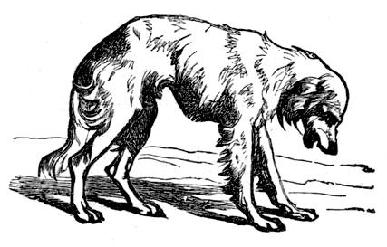 The sensation induces him to seek solitude. But there is another reason which decides his choice of a resting-place. The light inflicts upon him intense agony. The sun is to him an instrument of torture, which he therefore studies to avoid, for his brain aches and feels as it were a trembling jelly. This induces the poor brute to find out the holes and corners where he is least likely to be noticed, and into which the light is unable to enter. In solitude and darkness he passes his day. If his retreat be discovered and the master's voice bids him to come forth, the affectionate creature's countenance brightens; his tail beats the ground, and he leaves his hiding-place, anxious to obey the loved authority; but before he has gone half the distance, a kind of sensation comes over him, which produces an instantaneous change in his whole appearance. He seems to say to himself, "Why cannot you let me alone? Go away. Do go away. You trouble, you pain me." And thereon he suddenly turns tail and darts back into his dark corner. If let alone, there he will remain; perhaps frothing a little at the mouth, and drinking a great deal of water, but not issuing from his hiding-place to seek after food. His appetites are altered, hair, straw, dirt, filth, excrement, rags, tin shavings, stones, the most noisome and unnatural substances are then the delicacies for which the poor dog, changed by disease, longs, and swallows, in hope to ease a burning stomach. So anxious is he for liquids, and so depraved are his appetites, that no sooner has he passed a little urine than he turns round to lick it up. He is now altogether changed. Still he does not desire to bite mankind; he rather endeavors to avoid society; he takes long journeys of thirty or forty miles in extent, and lengthened by all kinds of accidents, to vent his restless desire for motion. When on these journeys he does not walk. This would be too formal and measured a pace for an animal whose whole frame quivers with excitement. He does not run. That would be too great an exertion for an animal whose body is the abode of a deadly sickness. He proceeds in a slouching manner, in a kind of trot; a movement neither run nor walk, and his aspect is dejected. His eyes do not glare and stare, but they are dull and retracted. His appearance is very characteristic, and if once seen, can never afterwards be mistaken. In this state he will travel the most dusty roads, his tongue hanging dry from his open mouth, from which, however, there drops no foam. His course is not straight. How could it be, since it is doubtful whether at this period he sees at all? His desire is to journey unnoticed. If no one notices him, he gladly passes by them. He is very ill. He cannot stay to bite. If, nevertheless, anything oppose his progress, he will, as if by impulse, snap—as a man in a similar state might strike, and tell the person "to get out of the way." He may take his road across a field in which there are a flock of sheep. Could these creatures only make room for him, and stand motionless, the dog would pass on and leave them behind uninjured. But they begin, to run, and at the sound, the dog pricks up. His entire aspect changes. Rage takes possession of him. What made that noise? He pursues it with all the energy of madness. He flies at one, then at another. He does not mangle, nor is his bite, simply considered, terrible. He cannot pause to tear the creature he has caught. He snaps and then rushes onward, till, fairly exhausted and unable longer to follow, he sinks down, and the sheep pass forward to be no more molested. He may have bitten twenty or thirty in his mad onslaught; and would have worried more had his strength lasted, for the furor of madness then had possession of him.