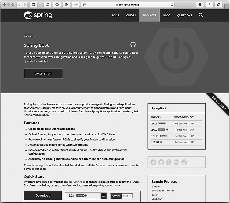 Рис. 2.1. Домашняя страница Spring Boot (https://projects.spring.io/spring-boot/)