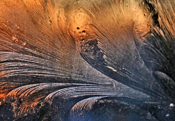 Таким образом, парейдолия для нас теперь не просто разновидность зрительных иллюзий, но еще и прием, позволяющий иллюзорные объекты превращать в художественные образы. Теперь наша задача проследить, как работает данный прием. Приведу вам следующий пример, связанный с парейдолией. Однажды зимним вечером я сфотографировал на замерзшем окне морозный узор.