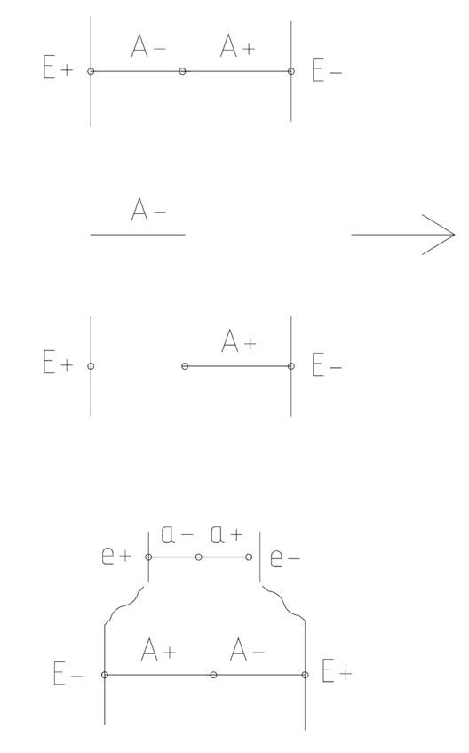 Е+ притягивается к А- и Е-, но при этом отталкивается от А+ и Е+, при этом А+ притягивается к А-.