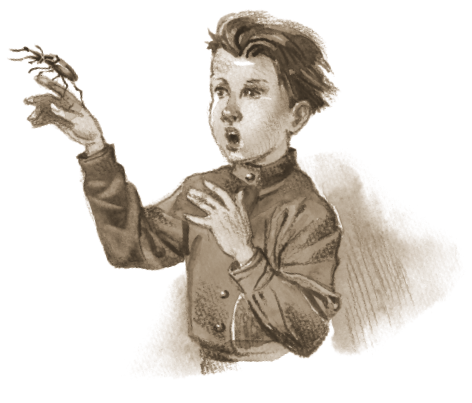 Томек робко вошел в комнату. По-видимому, здесь его все же ожидало наказание. На всякий случай он остановился недалеко от двери. Несмотря на опасение, он с интересом взглянул на таинственного гостя и сказал: